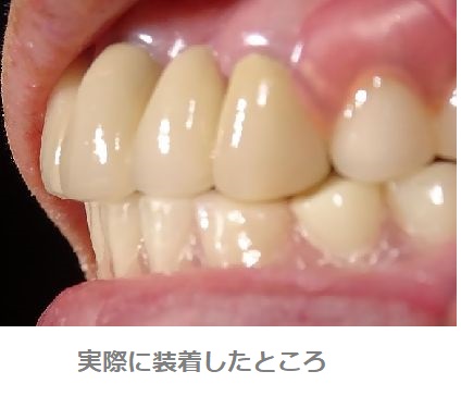 遠目には義歯を装着していることが殆ど分かりません。旧来の義歯に比べてピンク部分の厚みが2/3程ですので、異物感も少なくなっています。