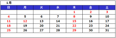 診療カレンダー 2025年 診療カレンダー 2026年 赤数字は休診日です。